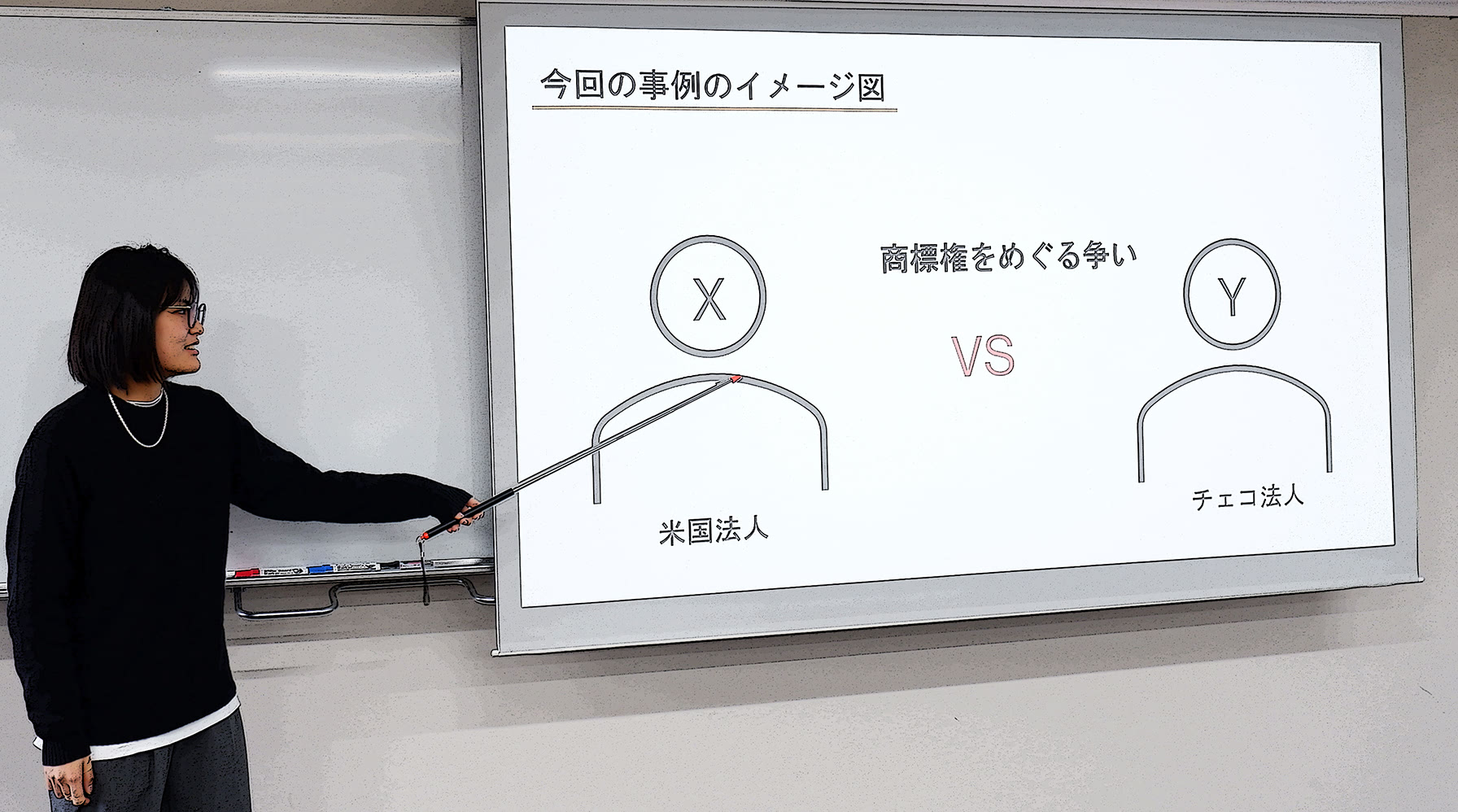 2025年11月7日(金)のゼミナールでは、標章の類似性判断と商標権の効力の範囲をテーマに、プレゼンテーションと討論を行いました。
